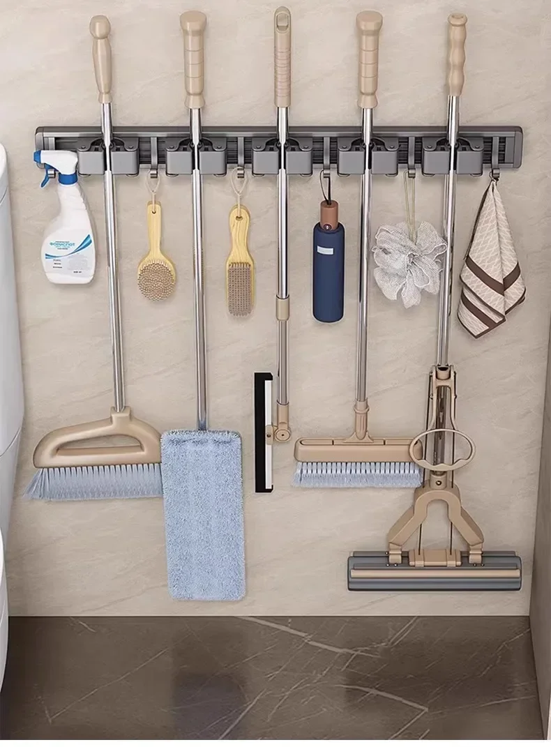 Mop Holder Wall: Hooks Wall Mounted Mop Organizer Holder